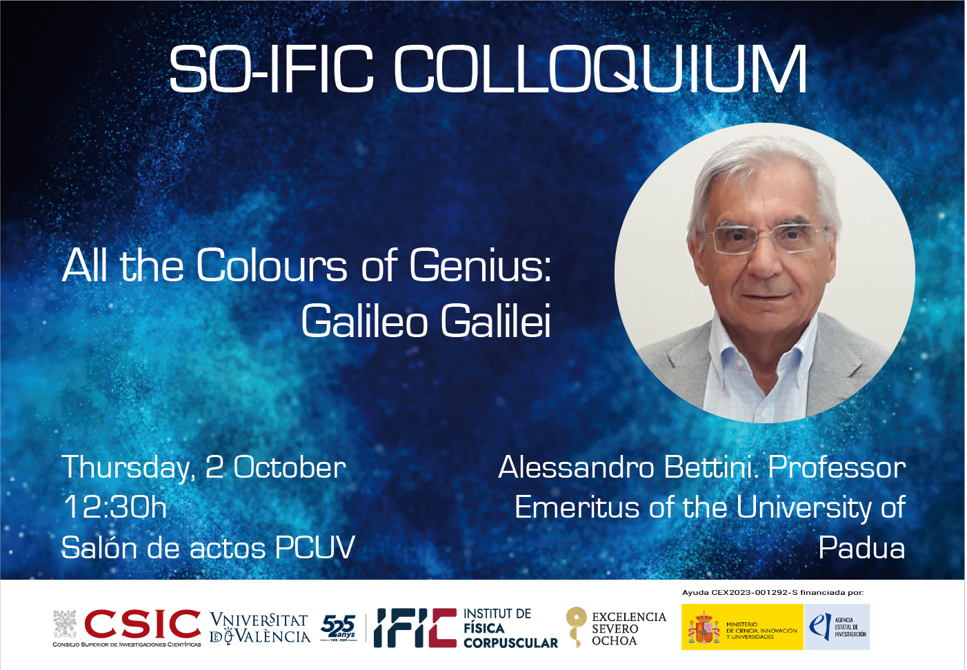 Coloquio IFIC | All the colours of Genius: Galileo Galilei No te pierdas esta ponencia de Alessandro Bettini, profesor emérito de la Universidad de Padua