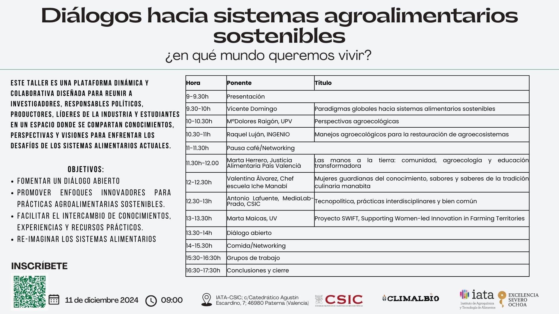 IATA-CSIC | Diálogos hacia sistemas agroalimentarios sostenibles: ¿en qué mundo queremos vivir? La jornada abordará temas clave para avanzar hacia sistemas agroalimentarios sostenibles desde diversas perspectivas