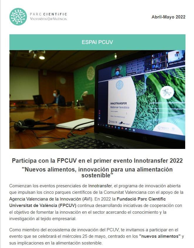 Abril-Mayo 2022 Newsletter del Parc Científic de la Universitat de València -Abril-Mayo 2022- See online »