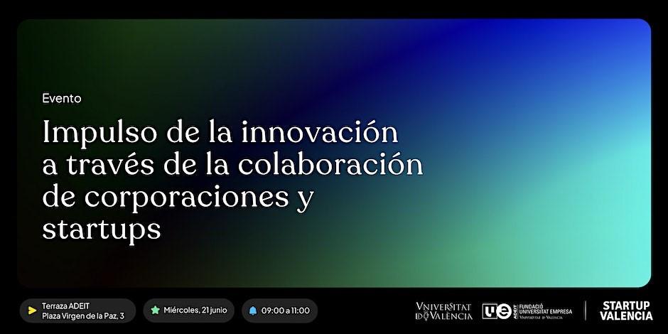 Startup Valencia, como nuevo patrono de ADEIT - Fundación Universidad - Empresa de la Universitat de València, ha organizado para el próximo 21 de junio de 2023, de 9:00h a 11:00h el webinar Impulso de la innovación: colaboración entre corporaciones y startups, que está destinado a consolidar a València como la ciudad más densa en startups a nivel nacional y fortalecer cada vez más su posicionamiento como hub tecnológico de referencia, también a nivel internacional.