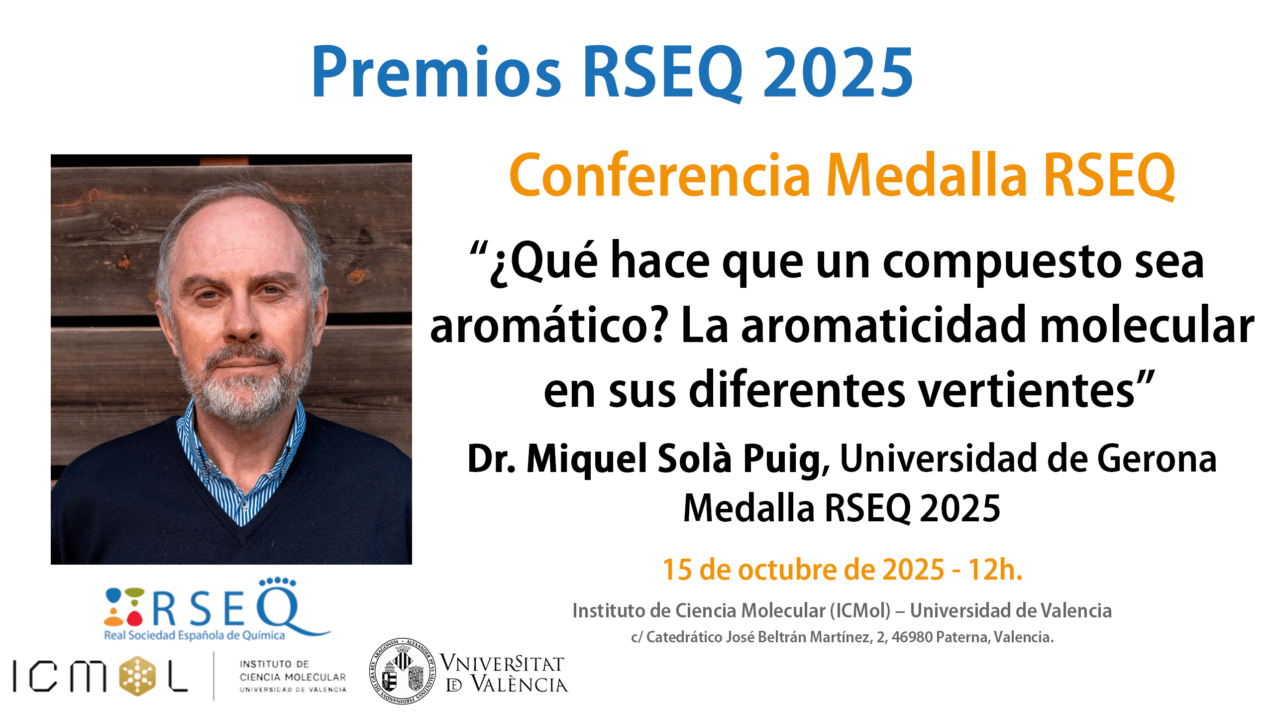 ICMol | Charla Miquel Solà No te pierdas esta charla que se enmarca dentro de los premios de la RSEQ