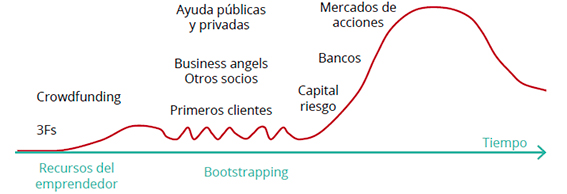 La imagen refleja, a nivel orientativo, los principales recursos a buscar en función del progreso de la iniciativa.