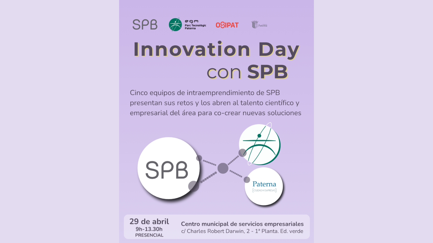 Innovation Day con SPB: innovación abierta para abordar retos industriales en Paterna 29/04/2026 Te invitamos a esta jornada para conectar empresa, tecnología y talento en torno a retos industriales reales.